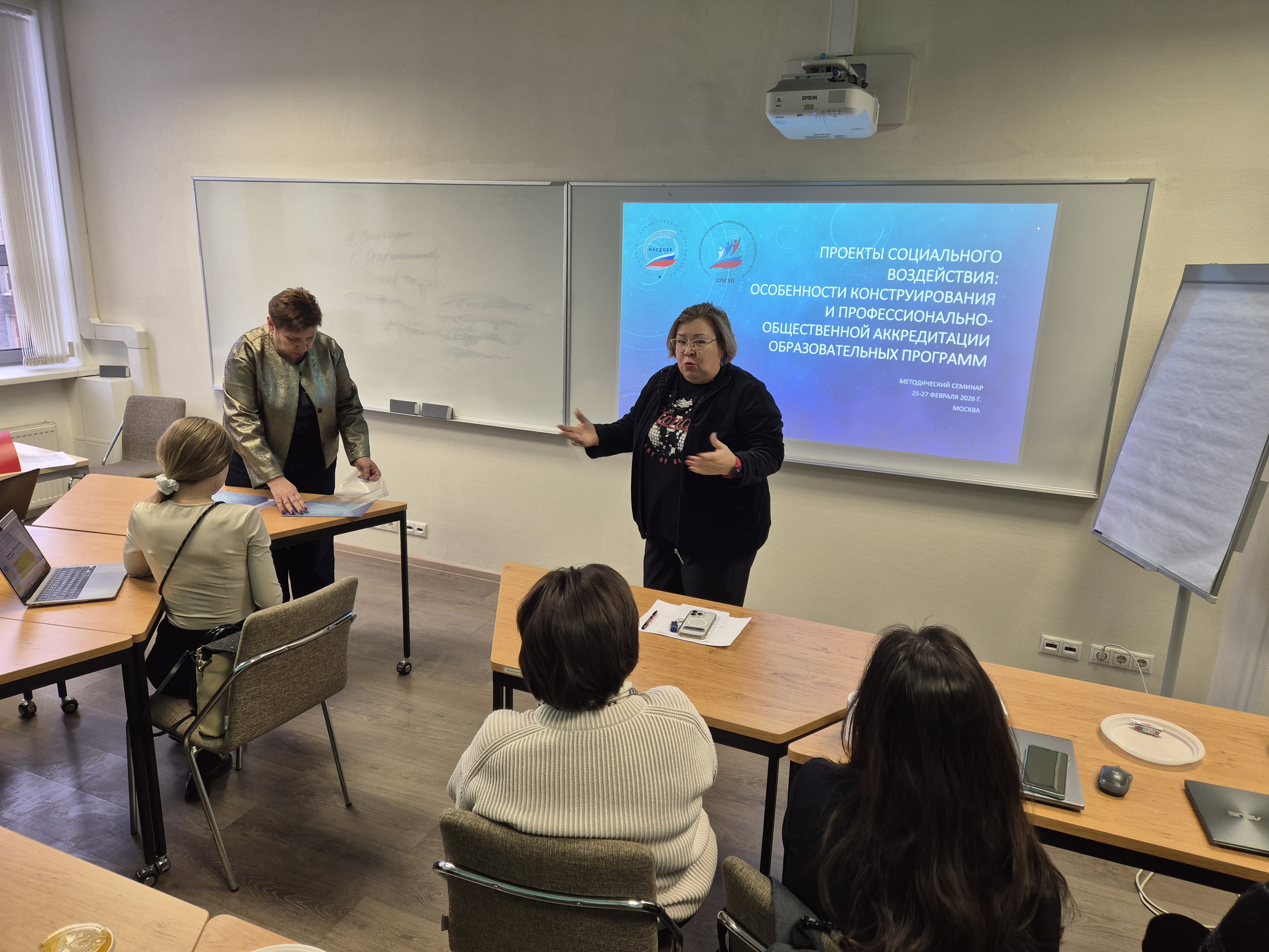 В СПК в сфере управления и права и НАСДОБР продолжается работа по формированию профессионального сообщества преподавателей, заинтересованных в реализации образовательных программ по тематике «Управление проектами социального воздействия». 25-27 февраля 2026 г. в кампусе РАНХиГС прошел методический семинар «Проекты социального воздействия: особенности конструирования и профессионально-общественной аккредитации образовательных программ».